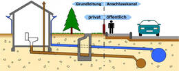 Die Abwasserentsorgung beginnt auf jedem einzelnen Grundstück und führt über die öffentliche Kanalisation bis zur Kläranlage. Die privaten Leitungen und Kanäle sind ein wichtiger Bestandteil des gesamten Entwässerungssystems. Zur Verdeutlichung der Größenordnungen: